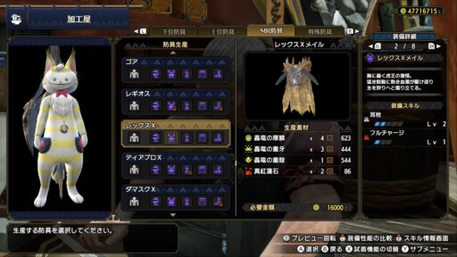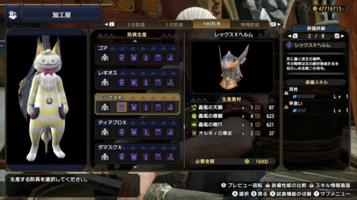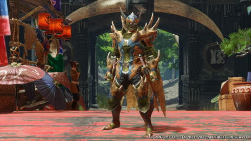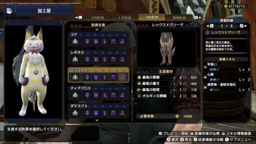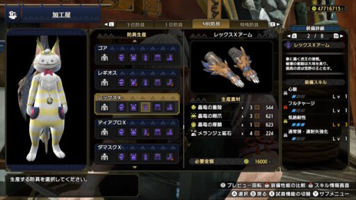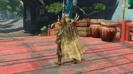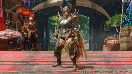 ティガレックスの素材で作られた防具はワイルドな感じがします!