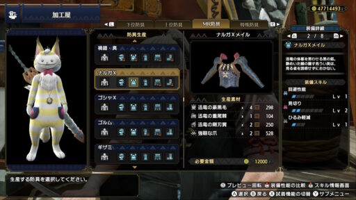 こんな感じです!頭防具から脚防具まで迅竜の身体を体現した防具説明が好きです!