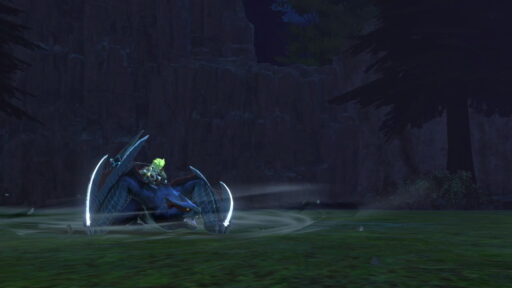 闇夜に光る赤い双眸は獲物を見逃しません。素早い動きで相手を錯乱させ、刃翼で切り刻む技となっています!