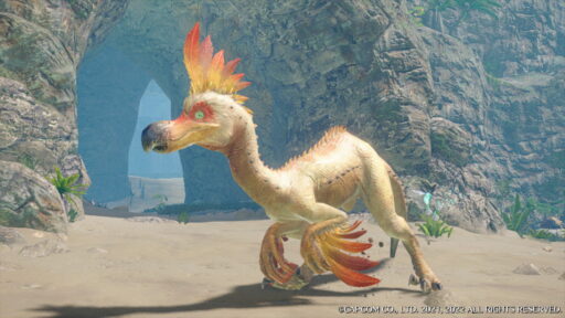羽飾りがついていとてももおしゃれさんなモンスターですが、器用な前脚で地面を掘り、掘ったときにでてきた岩で鈍器攻撃をする、かしこいモンスターです!